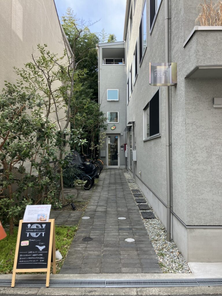 小道進むとガラス越しにカレー店
