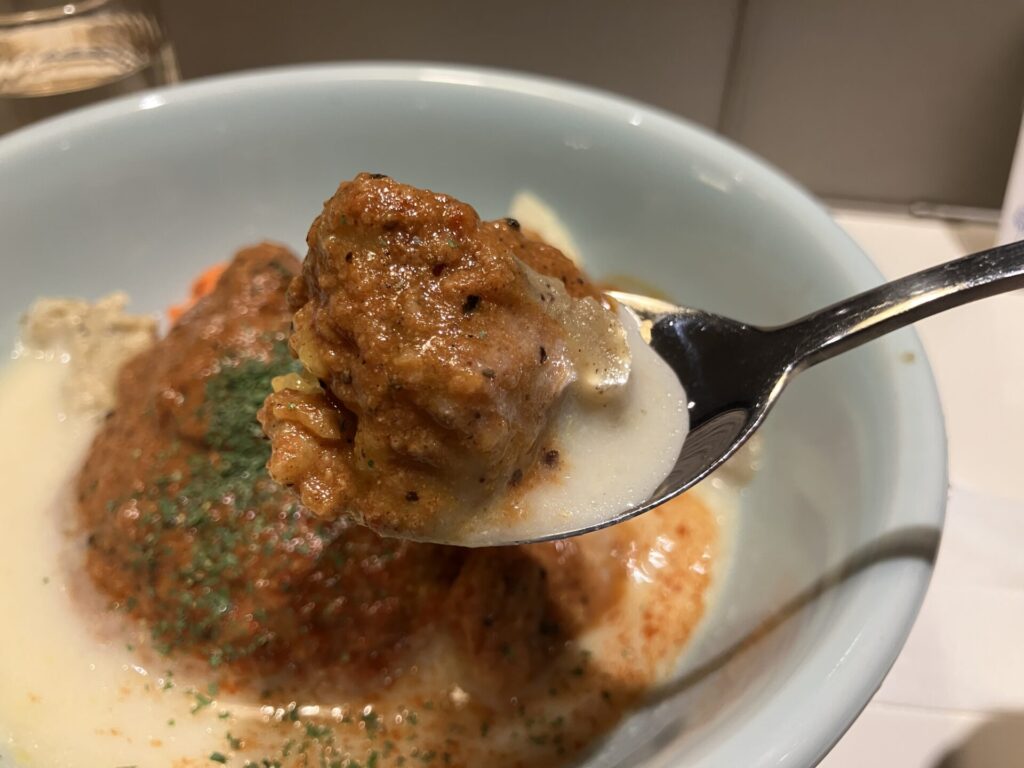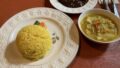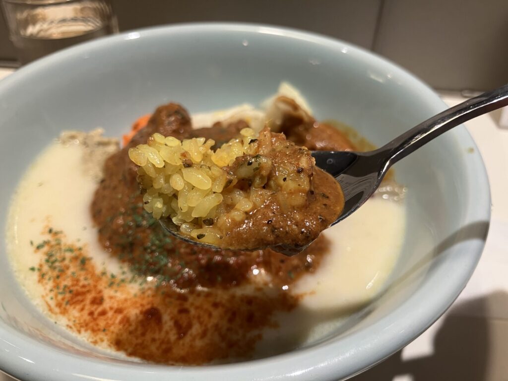 海老のカレーをすくうと中から登場ターメリックライス 黄色かわいい